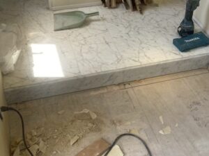 また、床立ち上がり部分を今回大理石で施工させていただきました。