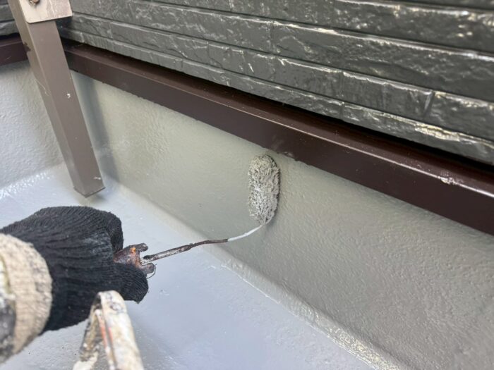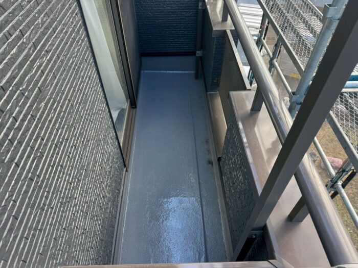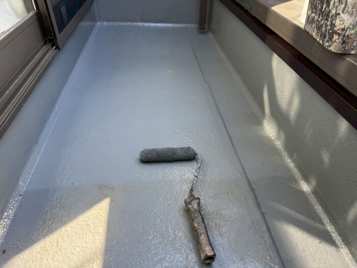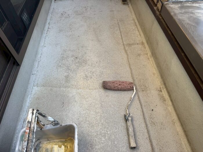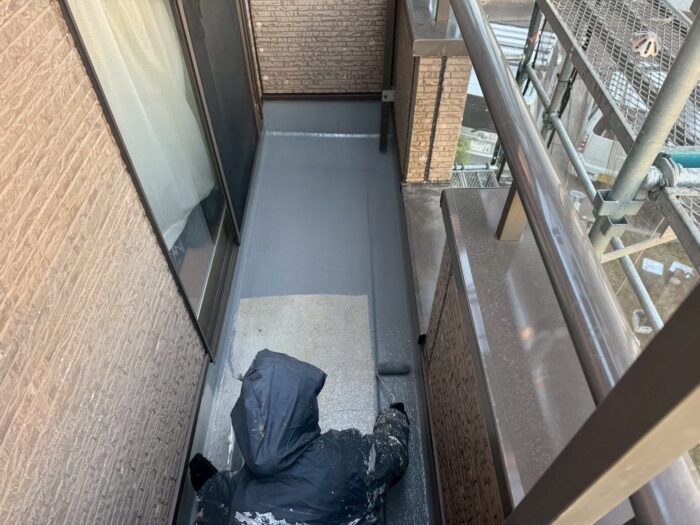 今回ベランダ防水は下地の傷みが少なかった為、TOPコートのみの工事となりました。