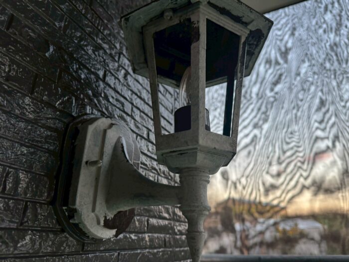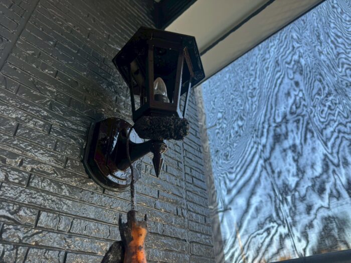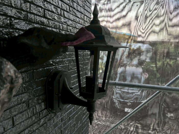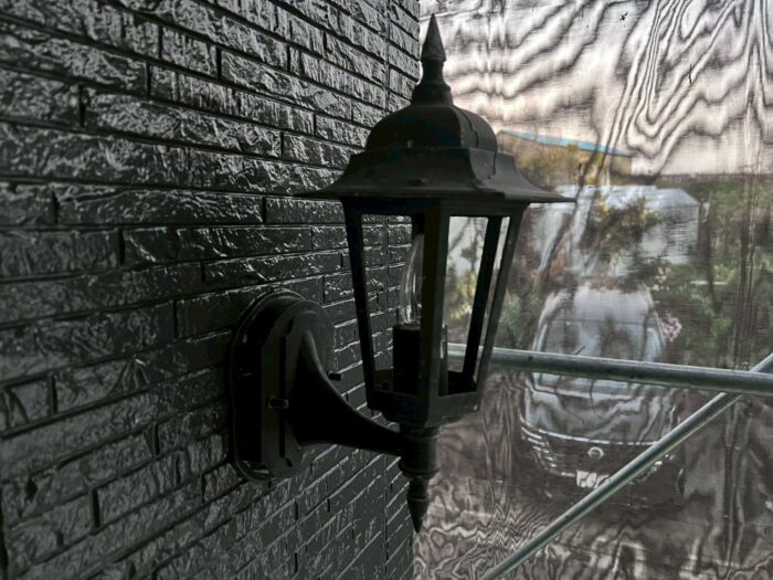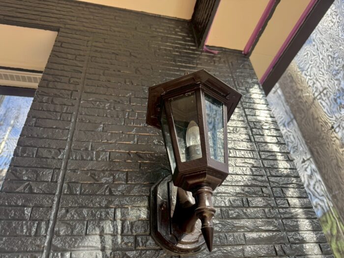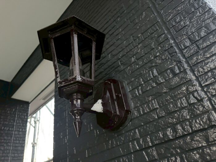 付帯工事はエアコンカバーや玄関先ライトなどを塗装していきました。