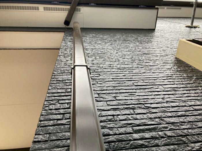 施工写真でもあるように数ミリで勾配を付けて縦樋共に丁寧に取付して行きました。