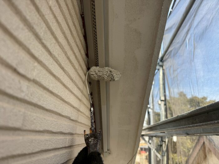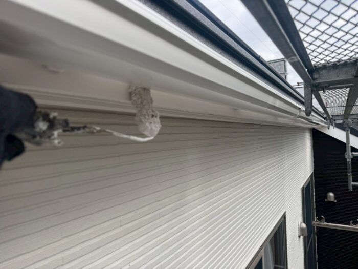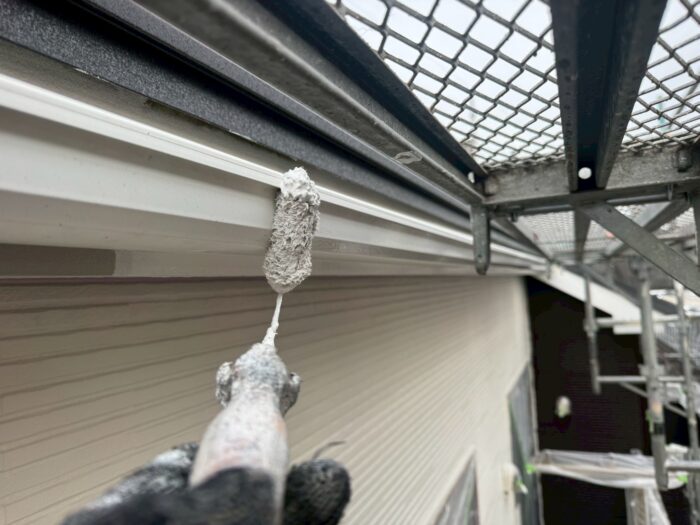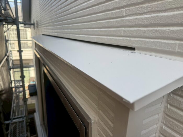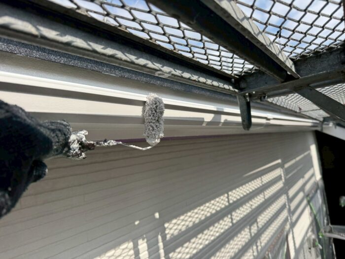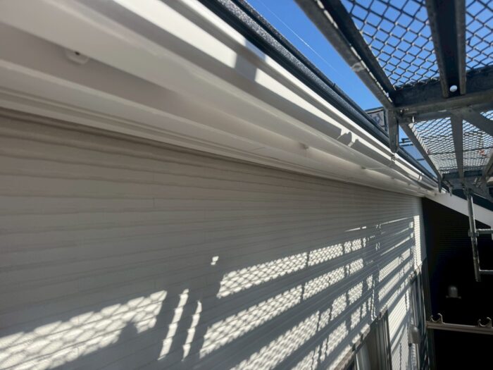 | 工事内容 | 付帯部塗装工事:樋3回塗り 破風板4回塗り 軒天井3回塗り 軒天井空気口3回塗り 霧除け4回塗り シャッターBOX3回塗り 水切り3回塗り |