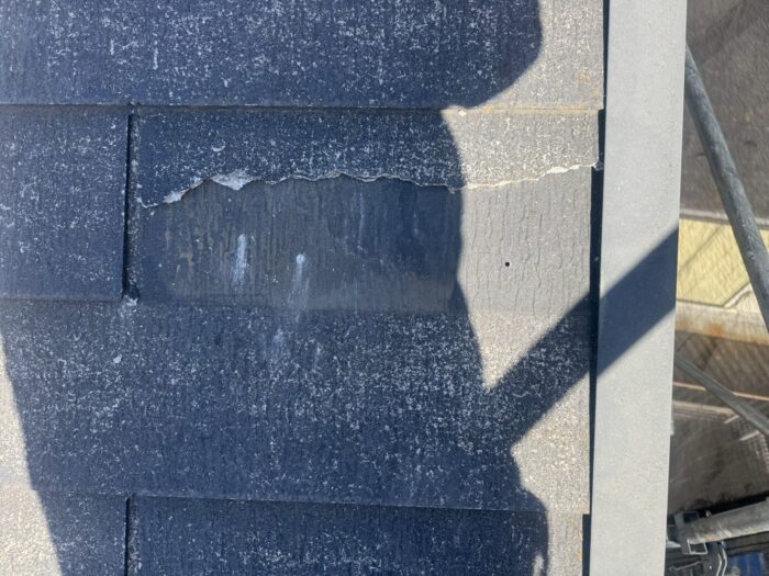 最初にS様が弊社へご連絡下さったきっかけは、風が少し強い日に屋根のカラーベストが割れて一部落ちてきてしまい、弊社にご連絡下さりました。